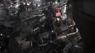 Equipes de resgate trabalham por horas em meio à destruição causada por…